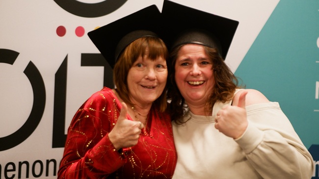 “Leren is geen rechte lijn. We stimuleren proberen want daar groeit veerkracht. Jullie succes toont waarom volwassenenonderwijs ertoe doet. Blijf dus springen en vooral: blijf leren.”