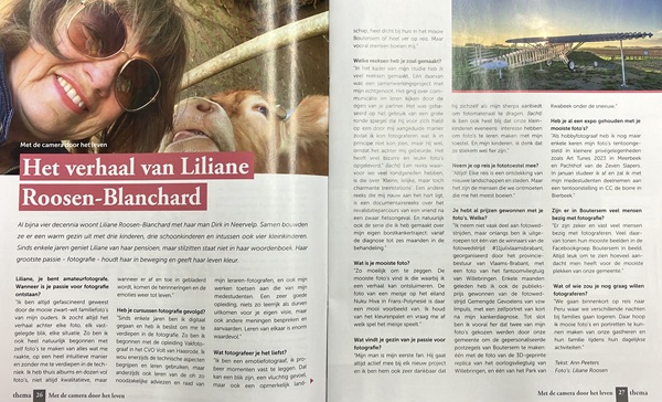 Al bijna vier decennia woont Liliane Roosen-Blanchard met haar man Dirk in Neervelp. Samen bouwden ze er een warm gezin uit met drie kinderen, drie schoonkinderen en intussen ook vier kleinkinderen. Sinds enkele jaren geniet Liliane van haar pensioen, maar stilzitten staat niet in haar woordenboek. Haar grootste passie – fotografie – houdt haar in beweging en geeft haar leven kleur.