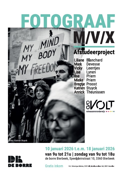 Cultuurcentrum De Borre in Bierbeek vormt vanaf 10 januari 2026 opnieuw het decor voor de jaarlijkse tentoonstelling Fotograaf M/V/X. De expo laat zien hoe elke cursist zijn eigen stem en stijl heeft ontwikkeld. Er is bijzonder hard gewerkt, en dat vertaalt zich in beelden die persoonlijk, krachtig en visueel verrassend zijn.